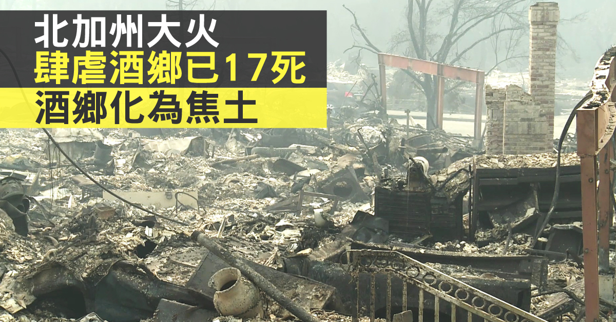 北加州大火肆虐酒鄉已17死 酒鄉化為焦土