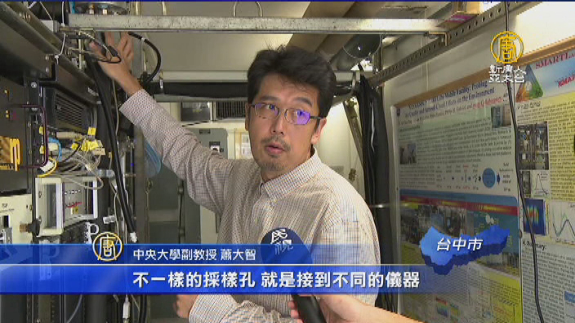 中央大學副教授 蕭大智:「就是從這邊統一抽進來,統一抽進來之後,它會有不一樣的採樣孔,不一樣的採樣孔 就是接到不同的儀器,在做連續的監測。」