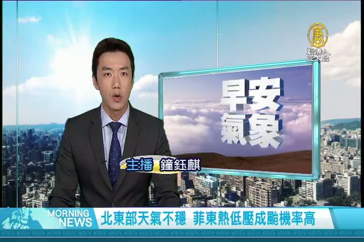 【新唐人亞太台 2017 年 10 月 12 日訊】歡迎您收看10月12日的早安新唐人,我是鐘鈺麒。先來帶您關心今天的天氣情況。今北部、東部和南部的天氣都不穩定,而且雷雨、陣雨機率偏高。今天桃園以北高溫在28到30度。新竹則是32到34度,提醒您留意,清晨與夜晚的溫差。帶您一起來看到國際媒體重要訊息。