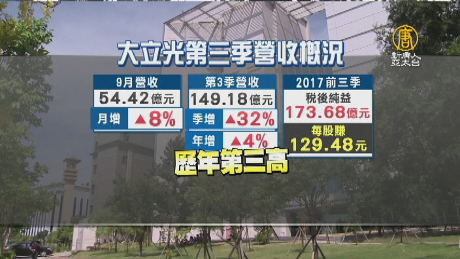 【新唐人亞太台 2017 年 10 月 12 日訊】再來看到,蘋果概念股,本周外資由賣轉買,推升了包括大立光、台積電等相關個股股價。股王大立光,今天發佈第三季財報,營收較上一季成長31%,累計前三季的稅後淨利,也超過 去年同期。