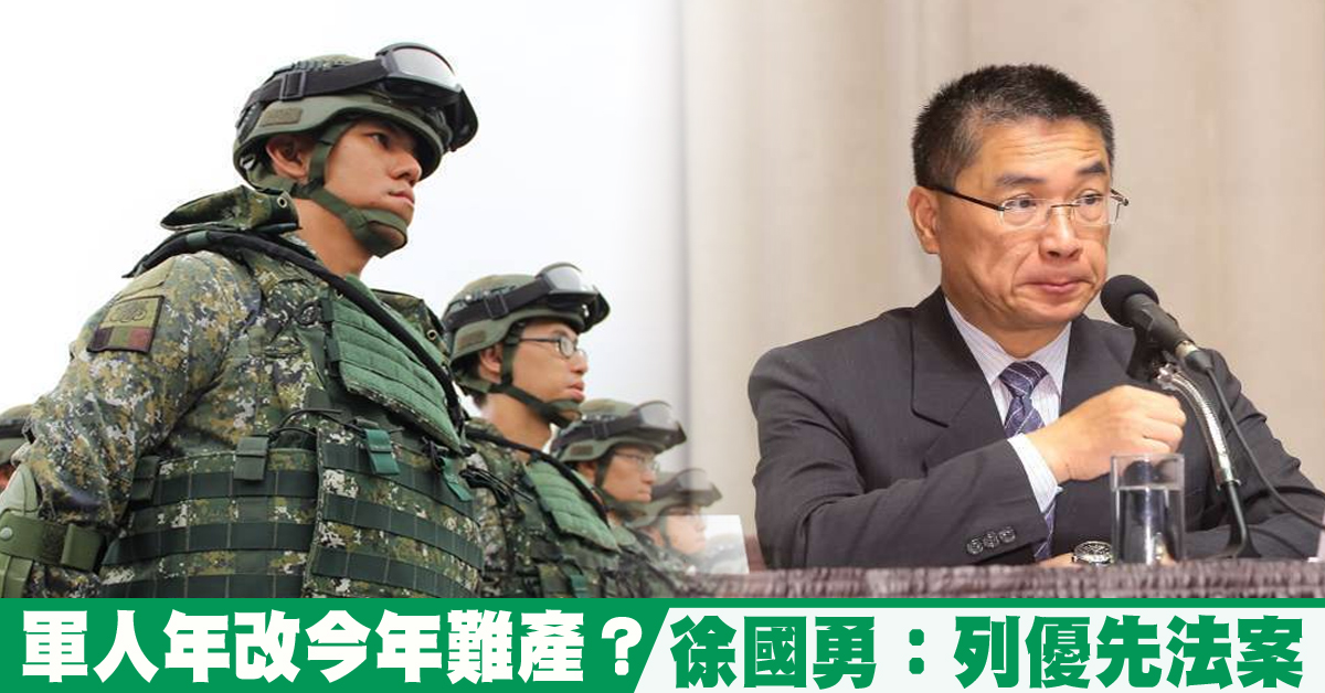 【新唐人亞太台 2017 年 10 月 12 日訊】軍人年金改革今年能不能完成,質疑聲浪不斷。上午行政院會結束後,發言人徐國勇被問到有關軍人年改進度,徐國勇表示,軍人年改,已經列為立院本會期優先法案。行政院會在年改會拍板定案後,進行核定。