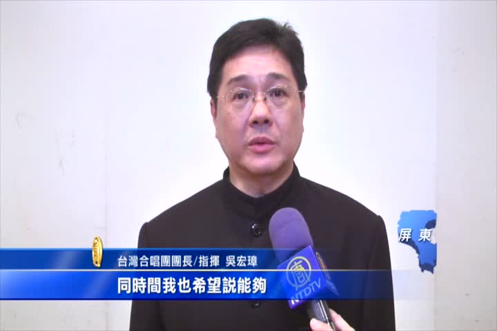 【新唐人亞太台 2017 年 10 月 12 日訊】成立於1992年的台灣合唱團,由聲樂家暨合唱指揮家的吳宏璋成立,並擔任團長和指揮,感召老中青三代的團員,懷著對台灣音樂文化的使命與堅持,傳唱台灣當代作曲家的歌曲25年,日前在屏東藝術館舉辦演唱會,分享他們的美聲。