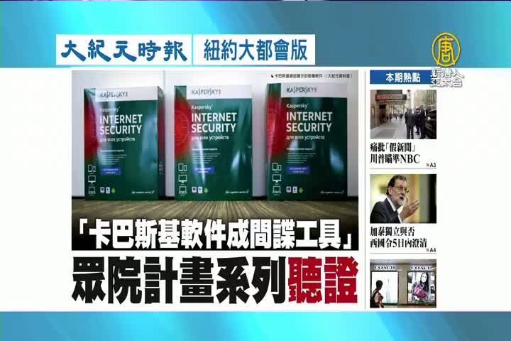 【新唐人亞太台 2017 年 10 月 13 日訊】接著看到大紀元時報紐約大都會版報導:「卡巴斯基軟體成間諜工具」,美國眾議院計畫系列聽證。