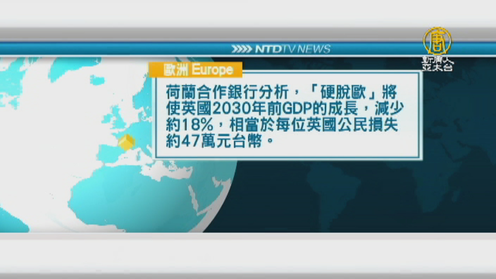 荷蘭合作銀行分析,「硬脫歐」將使英國2030年前GDP的成長,減少約18%,相當於每位英國公民損失 約47萬元台幣。