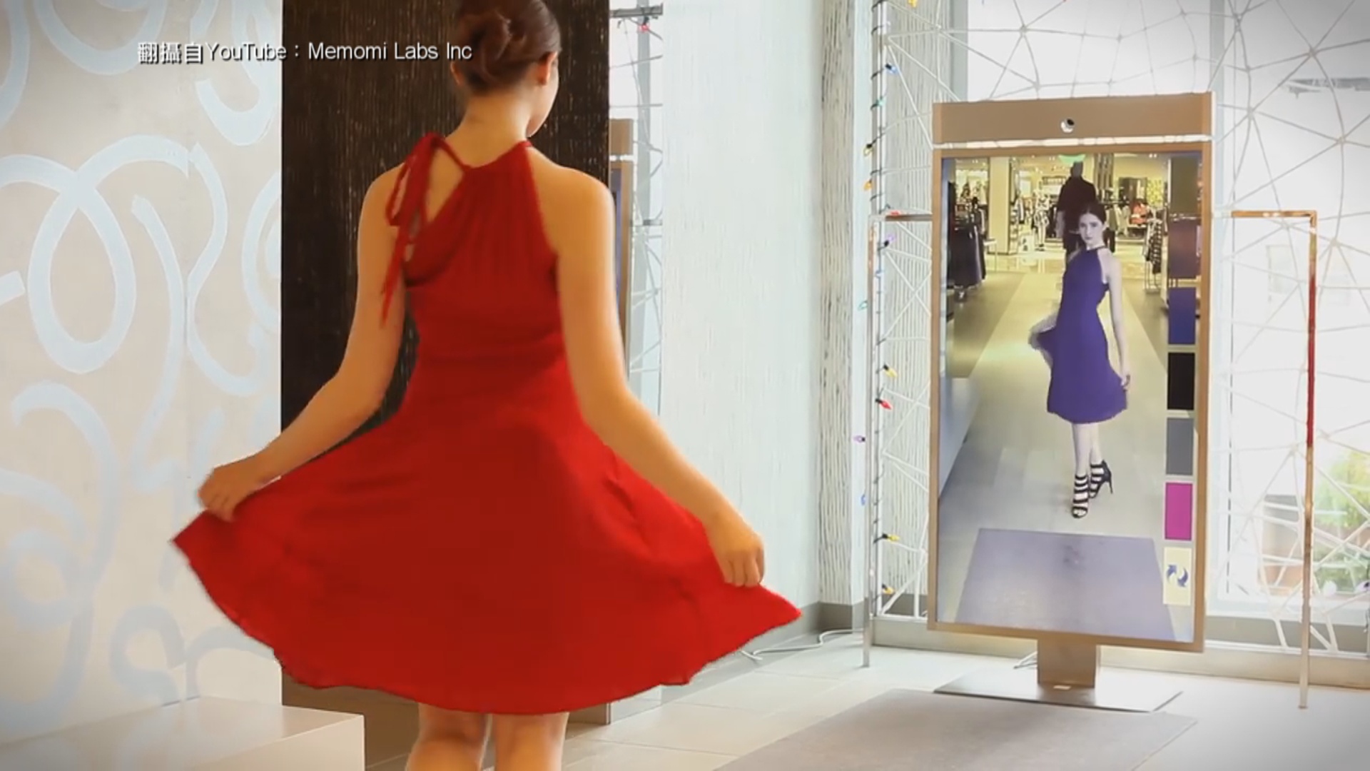 因應這個購物痛點,美國頂級奢侈品百貨(Neiman Marcus)與數位科技軟體公司(MemoMi)合作,推出MemoryMirror,帶來創新的試穿風潮。只要站在鏡子前輕輕揮手,就能更換不同顏色的衣服。這面神奇的鏡子還能一分為二,紀錄上次試穿的照片,讓消費者輕鬆比較不同的裝扮效果。