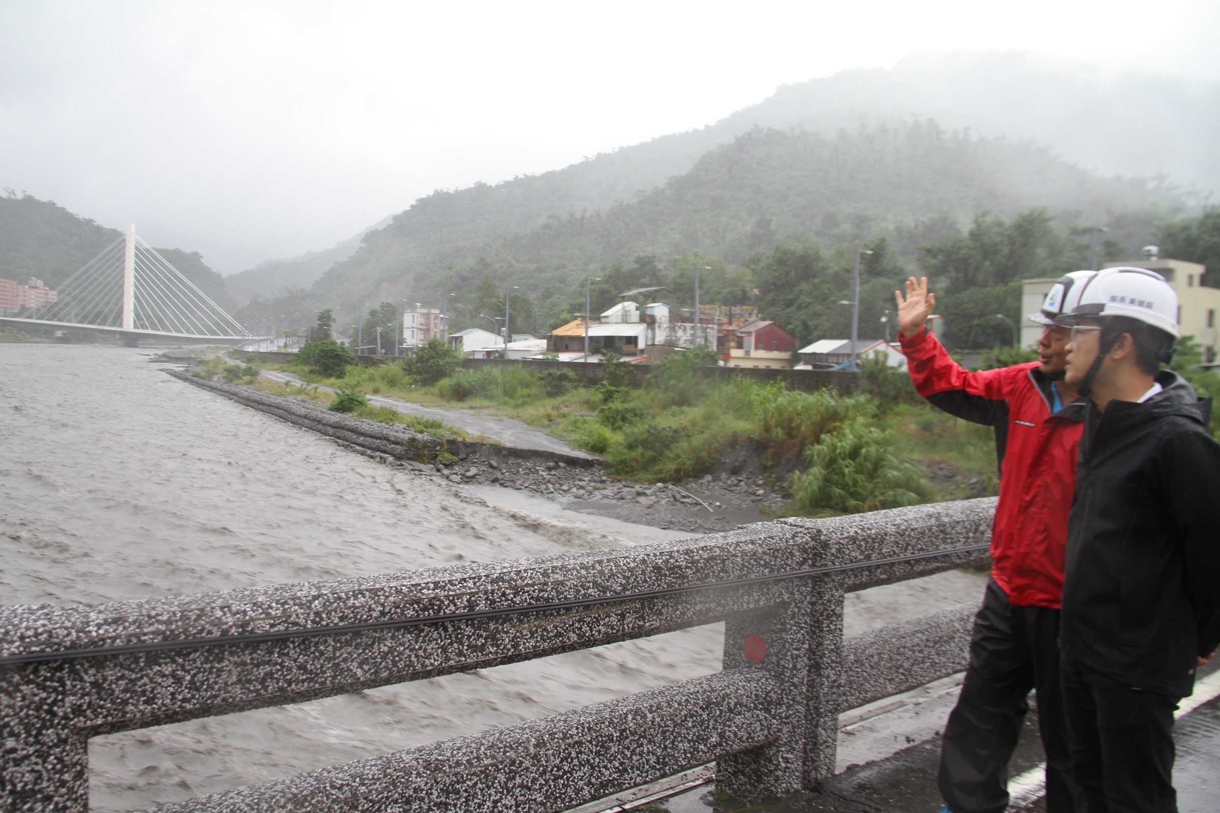 【新唐人亞太台 2017 年 10 月 15 日訊】連日豪大雨,台東多處道路塌陷、土石坍陷、積水災情,台東縣長黃健庭關心道路及水位警戒狀況,今(15)日勘查卑南鄉溫泉橋、太麻里鄉華源等南迴地區災情,指示縣府建設處在天氣放晴時儘速修補復原,並協調公路、鐵路單位清理道路,未來重建工程應加強道路邊坡排水、區域排水截流等系統設計。
