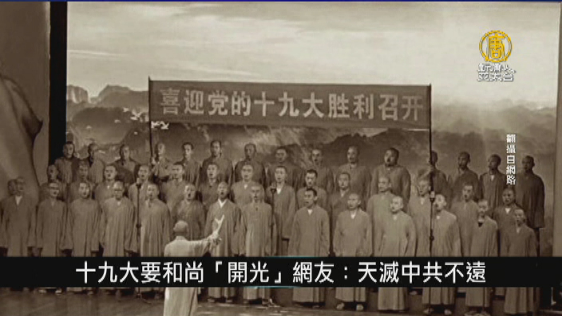 近日網路上流傳一段視頻,有穿袈裟的僧人在給中共「十九大」開光、誦經。同時有一群和尚上台唱紅歌向「十九大」表忠心。這些畫面在社交媒體上引起關注,並遭眾人拍磚稱,整個國家都被中共搞亂了,現在的佛教不是佛教,和尚也不是和尚了,發展下去,離中共滅亡也不遠了。
