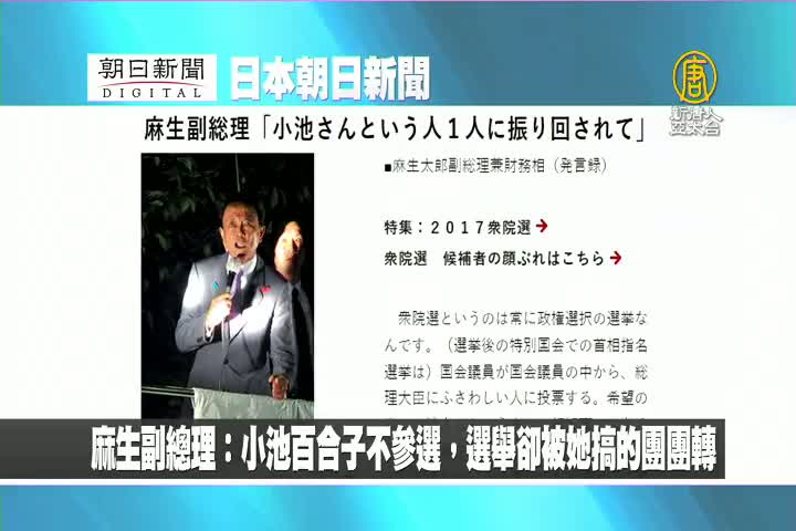 【新唐人亞太台 2017 年 10 月 16 日訊】來看到日本朝日新聞報導:麻生副總理表示,小池百合子不參選,眾議院選舉卻被她搞的團團轉。