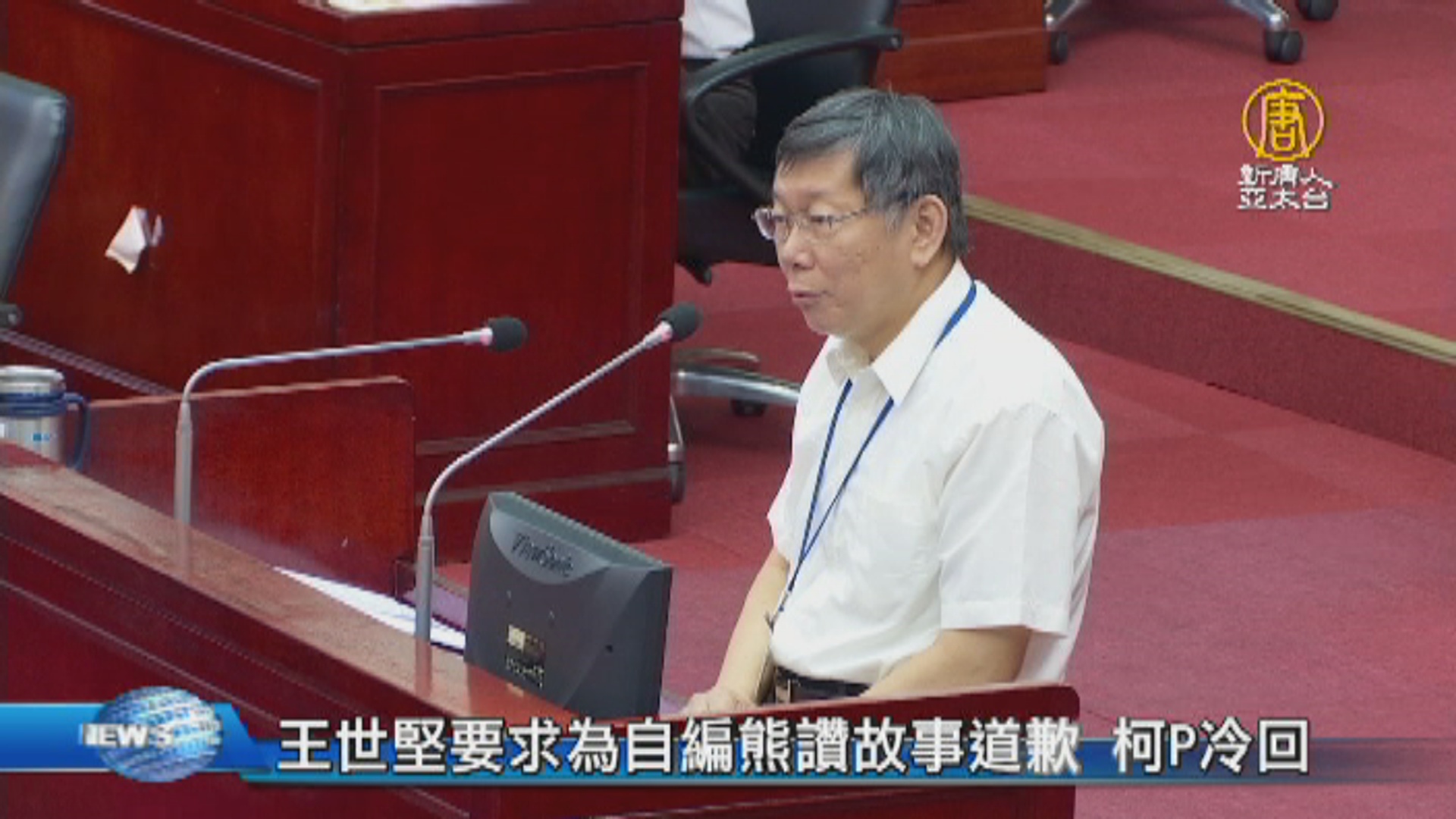【新唐人亞太台 2017 年 10 月 16 日訊】台北市長柯文哲今天到市議會進行專案報告,由於夫人陳佩琪之前在出席聯合醫院說故事活動時,自編熊讚故事影射柯文哲處境為夫抱不平,市議員王世堅說,應該要向天真的兒童道歉。
