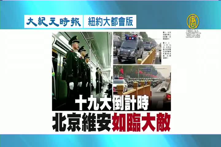 【新唐人亞太台 2017 年 10 月 18 日訊】接著看到大紀元時報紐約大都會版報導:十九大倒數計時,北京維安如臨大敵。