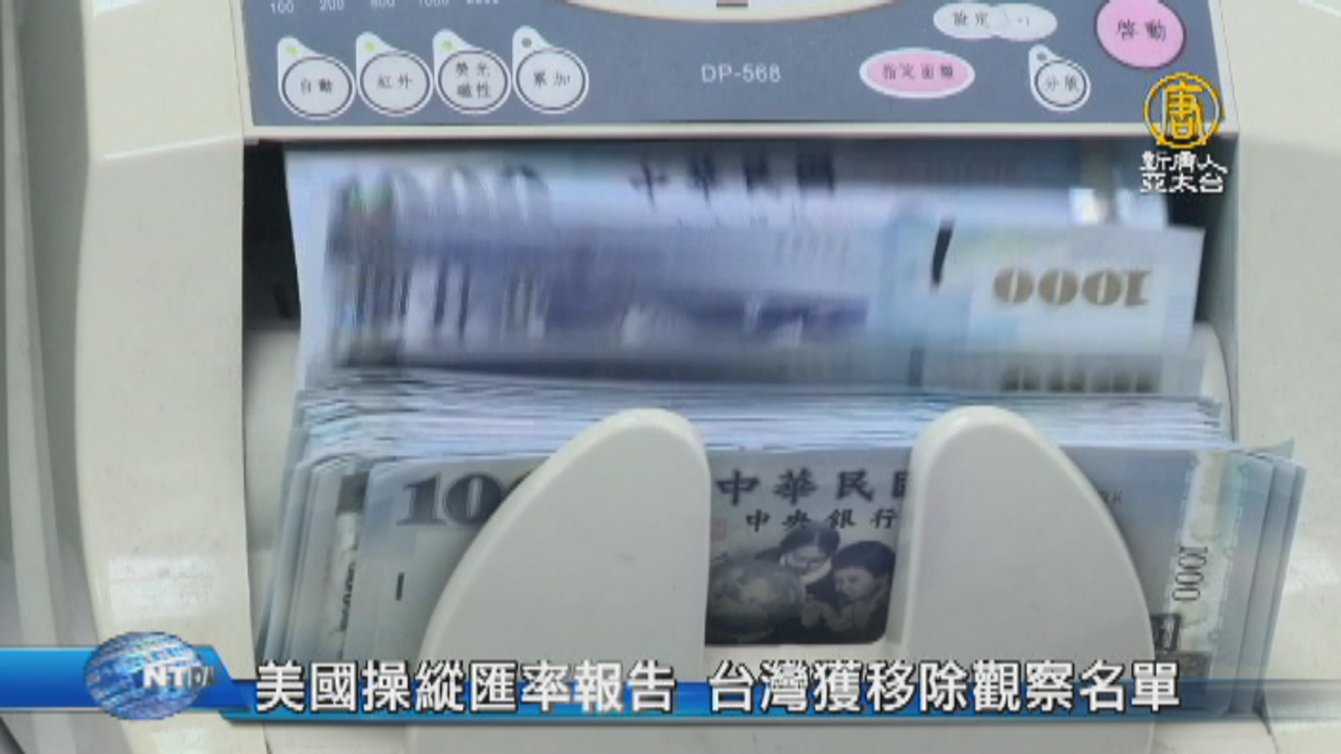 好,台灣被移出觀察名單,這次,沒有國家被列為匯率操縱國,不過,包括中國、日本、南韓、德國及瑞士仍被列在「觀察名單」,台幣今天兌美元匯率一度隨台股開高,升到30.14元價位,不過隨台股修正,台幣兌美元匯率也回落到平盤附近位置。