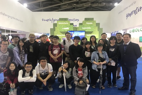 遠東新世紀研究發展中心 許嘉夫經理(右一)與文化大學紡織系學生合影。(遠東新世紀提供)