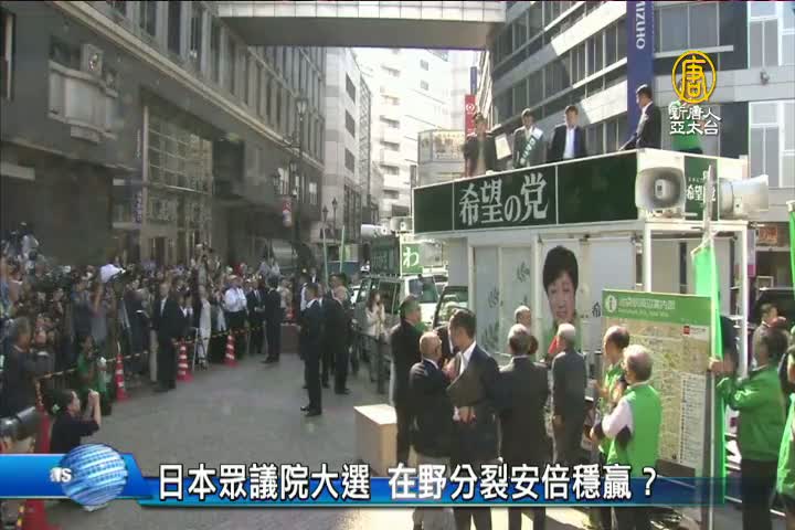 【新唐人亞太台 2017 年 10 月 18 日訊】日本眾議院選舉,這個星期天就要登場。而在經過兩個星期的選戰後,態勢也逐漸明朗。在野勢力的分裂,加上原先聲勢高漲的希望之黨民調滑落,安倍為首的自公民聯盟可說是勝券在握。