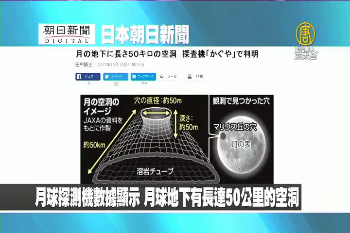 【新唐人亞太台 2017 年 10 月 19 日訊】來看到日本朝日新聞報導:月球探測機數據顯示,月球地下有長達50公里的空洞。