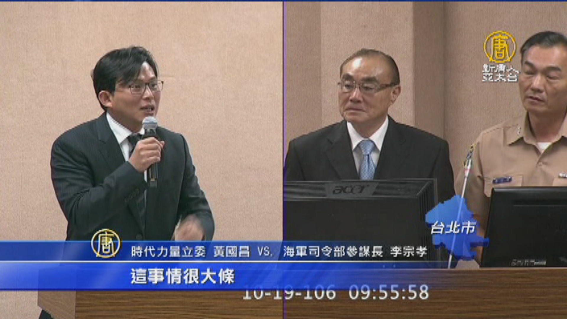 時代力量立委 黃國昌 VS. 海軍司令部參謀長 李宗孝:「那我現在問你的是,他自己已經跟中國地方政府簽了投資合作協議,這件事情你知不知道?你說你知道,然後你還讓他來投標?這個我們不知道,你要不要再慎重考慮一下你的答案,這事情很大條。」