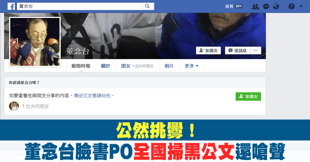 公然挑釁!董念台臉書PO全國掃黑公文還嗆聲