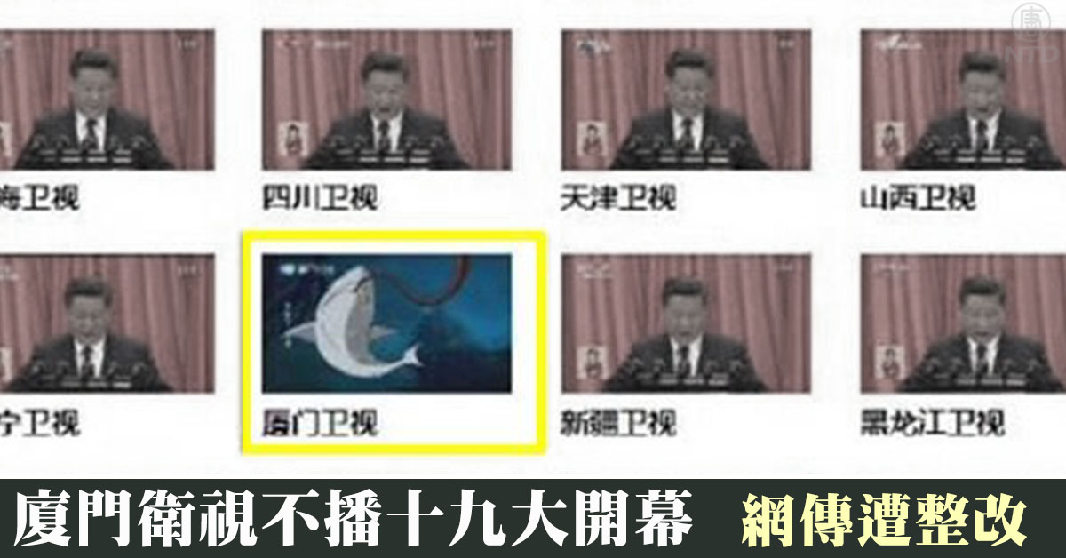 「十九大」開幕,中國各地官方電視台幾乎均直播十九大開幕畫面,但有網民發現,唯獨廈門衛視在播卡通片。網傳廈門衛視收到整改通知。