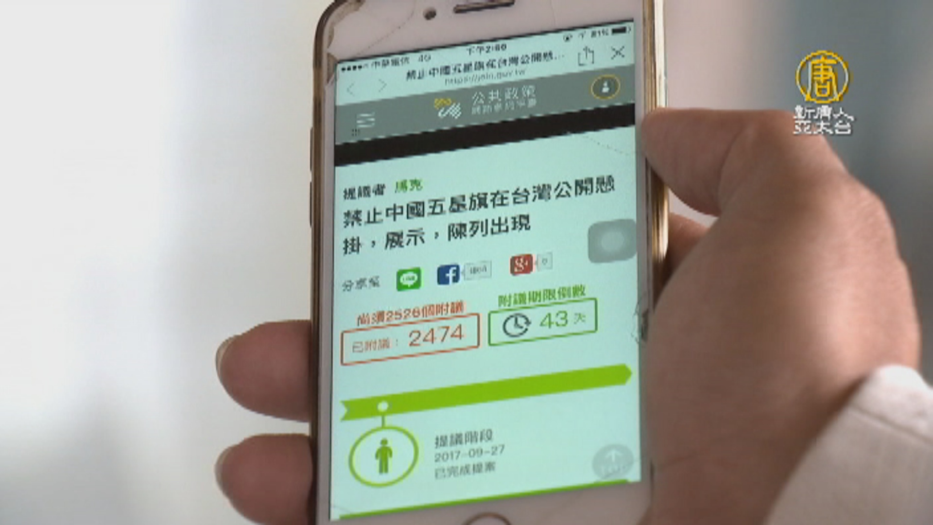 【新唐人亞太台 2017 年 10 月 21 日訊】再來看到,公共政策網路平台上,繼「調整時區後」,又有網友提案,禁掛五星旗,認為這樣才能有效反制,中共在台灣無孔不入的統戰,儘管還沒達到,有關單位回應的門檻,但有專家認為,這已經顯示了年輕一代,對中共滲透台灣的反感。
