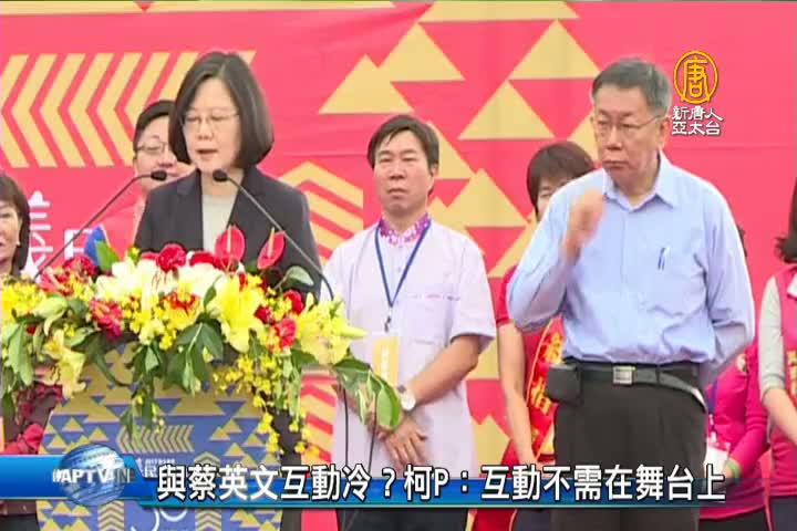 【新唐人亞太台 2017 年 10 月 22 日訊】總統蔡英文今天(22日)與台北市長柯文哲同台出席客家義民祭,媒體關注兩人在舞台上零互動。會後柯文哲受訪時說,平常另外有互動,至於是否有與蔡英文核心幕僚見面談選舉?柯文哲沒有正面答覆。