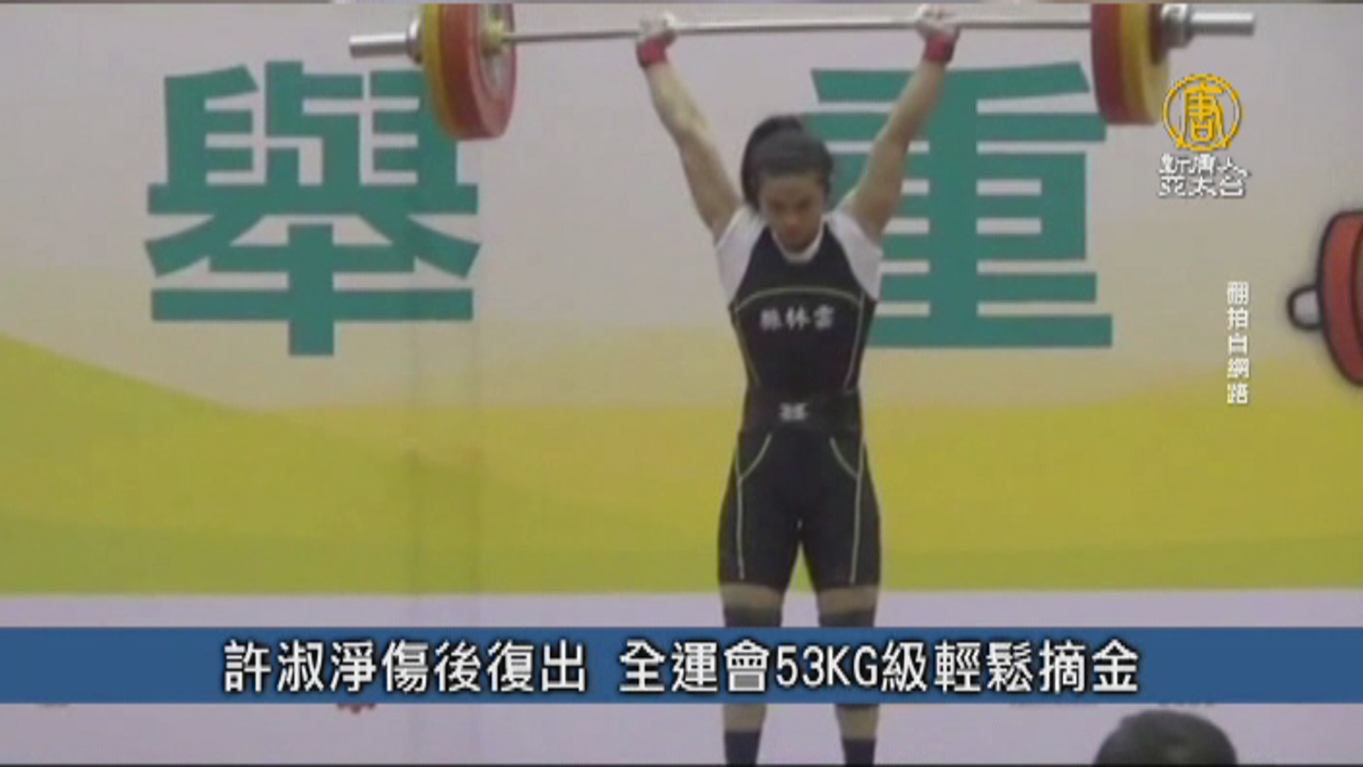 全國運動會22日起在宜蘭全面展開,兩屆奧運舉重金牌得主許淑淨,日前因傷退出世大運,今天她復出參加全運會,在女子53公斤級賽事,以抓舉90公斤、挺舉115公斤,總和205公斤的成績,輕鬆摘下金牌。