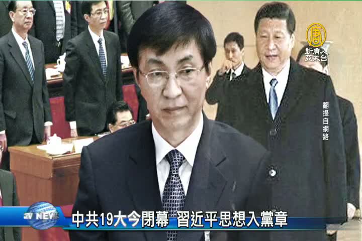 【新唐人亞太台 2017 年 10 月 24 日訊】中共「十九大」今天將閉幕,許多外媒關注新領導班子和習思想是否入黨章,根據港媒報導,新一屆政治局常委會 將維持七人體制,除了習近平和李克強保持不變, 其餘五人是栗戰書、韓正、汪洋、趙樂際、王滬寧。稍早,代表團已經將習近平的思想採納黨章,也意味,習近平的影響力將會被進一步鞏固。另外,港媒報導,習近平的打虎大將,王岐山,將會退出政治局常委會。但可能會接下 國家監察委員會主任,或是,國安委副主席。