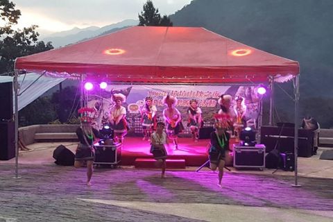 音樂晚會有豐富的原民特色歌舞表演,邀請在場遊客互動起舞,呈現出慶豐收熱鬧同歡的氛圍(桃園市府提供)