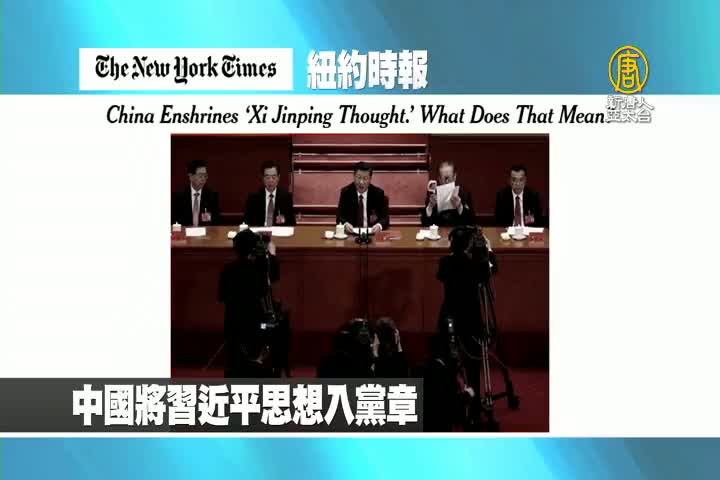 【新唐人亞太台 2017 年 10 月 25 日訊】首先來看到美國紐約時報報導:中國將習近平思想入黨章。