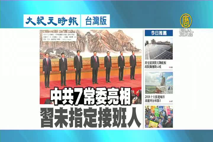 【新唐人亞太台 2017 年 10 月 26 日訊】繼續看到大紀元時報台灣版報導:中共7常委亮相,習未指定接班人。