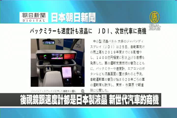 【新唐人亞太台 2017 年 10 月 26 日訊】來看到日本朝日新聞報導:後視鏡跟速度計都是日本製液晶 新世代汽車的商機。