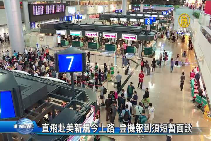 【新唐人亞太台 2017 年 10 月 26 日訊】早安新唐人,先帶您關心,美國為了加強反恐措施,從今天開始,實施新規定,所有直飛赴美的旅客,在報到辦理登機手續時,將面臨短暫安全面談。每天將有約2000個航班,32萬乘客受到影響。所以觀眾朋友如果有赴美計劃,最好要提早報到。