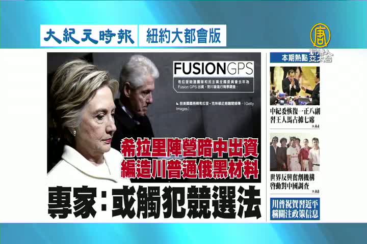【新唐人亞太台 2017 年 10 月 27 日訊】接著看到大紀元時報紐約大都會版報導:希拉蕊陣營暗中出資,編造川普通俄材料。專家指出:或觸犯競選法。
