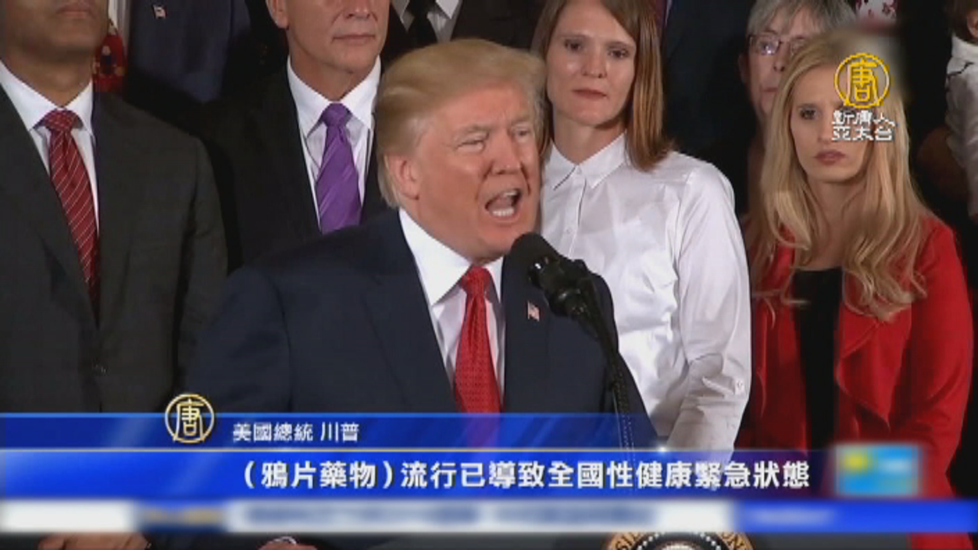 【新唐人亞太台 2017 年 10 月 27 日訊】國際消息來看到,美國總統川普宣布,進入全國公眾健康緊急狀態,以全力對抗毒品氾濫,以及鴉片類藥物,所帶來的健康危機。