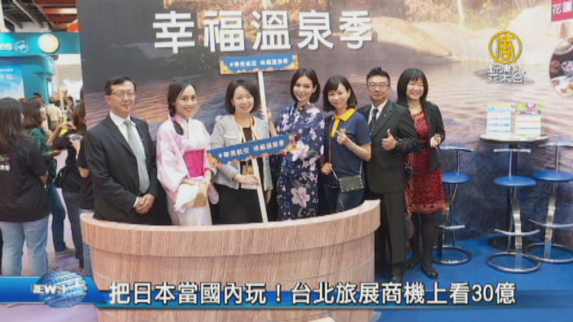 【新唐人亞太台 2017 年 10 月 27 日訊】台灣旅遊業年度盛事,台北國際旅展今天登場,業者推優惠,旅展限定、日本東北賞楓自由行4天,未稅價最低不到6千元,還喊出口號「把日本當國內在玩」,今年參展攤位數創歷年新高,預期整體商機上看30億元。
