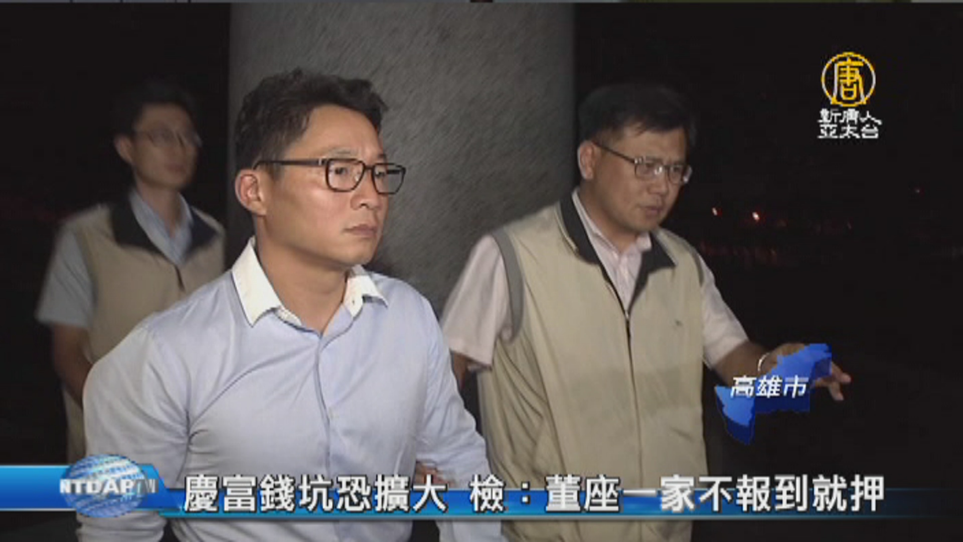 【新唐人亞太台 2017 年 10 月 27 日訊】慶富造船獵雷艦聯貸案確定違約,聯貸主辦行第一銀行已分別向高雄地檢署、高雄地院提出刑事、民事告訴,為防慶富董事長陳慶男與妻小3人潛逃,檢方火速約談並祭出「防逃令」,命先前已被限制出境的陳慶男一家三口,每天到派出所報到,無故不到就要聲押。