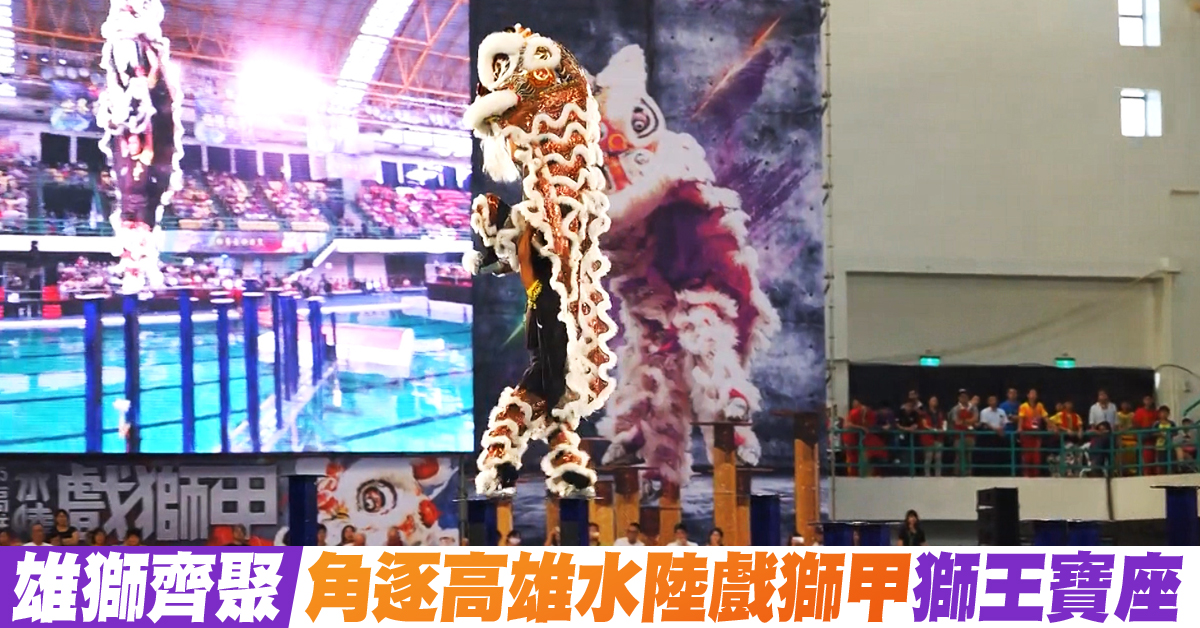 兩年一次的「高雄水陸戲獅甲」賽事這個週末登場,第一天在高雄市立國際游泳池擂台競技,第二天移師高雄巨蛋一爭高下,兩天成績加總最高分者為總冠軍,獅王獨得獎金40萬。