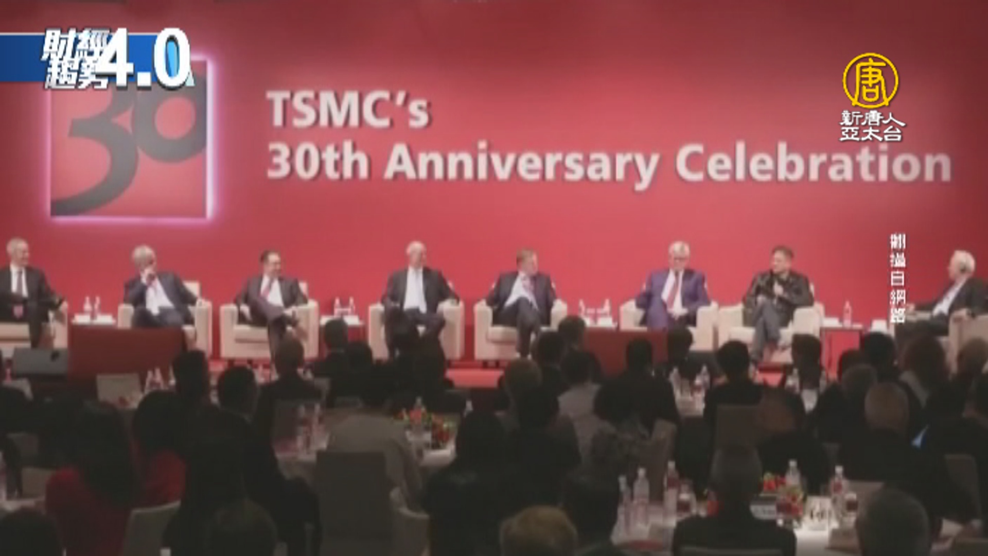 【新唐人亞太台 2017 年 10 月 29 日訊】關鍵時刻,帶您迅速掌握潮流趨勢,歡迎您收看財經趨勢4.0,我是沈唯同。台積電30歲了。蘋果營運長Jeff Williams,率領多位一級主管親自來台祝賀,陣容龐大;而多家重量級半導體大廠,包括高通、輝達、安謀及博通等執行長和設備供應商負責人,也都親自抵台,見證台積電歷史成就。