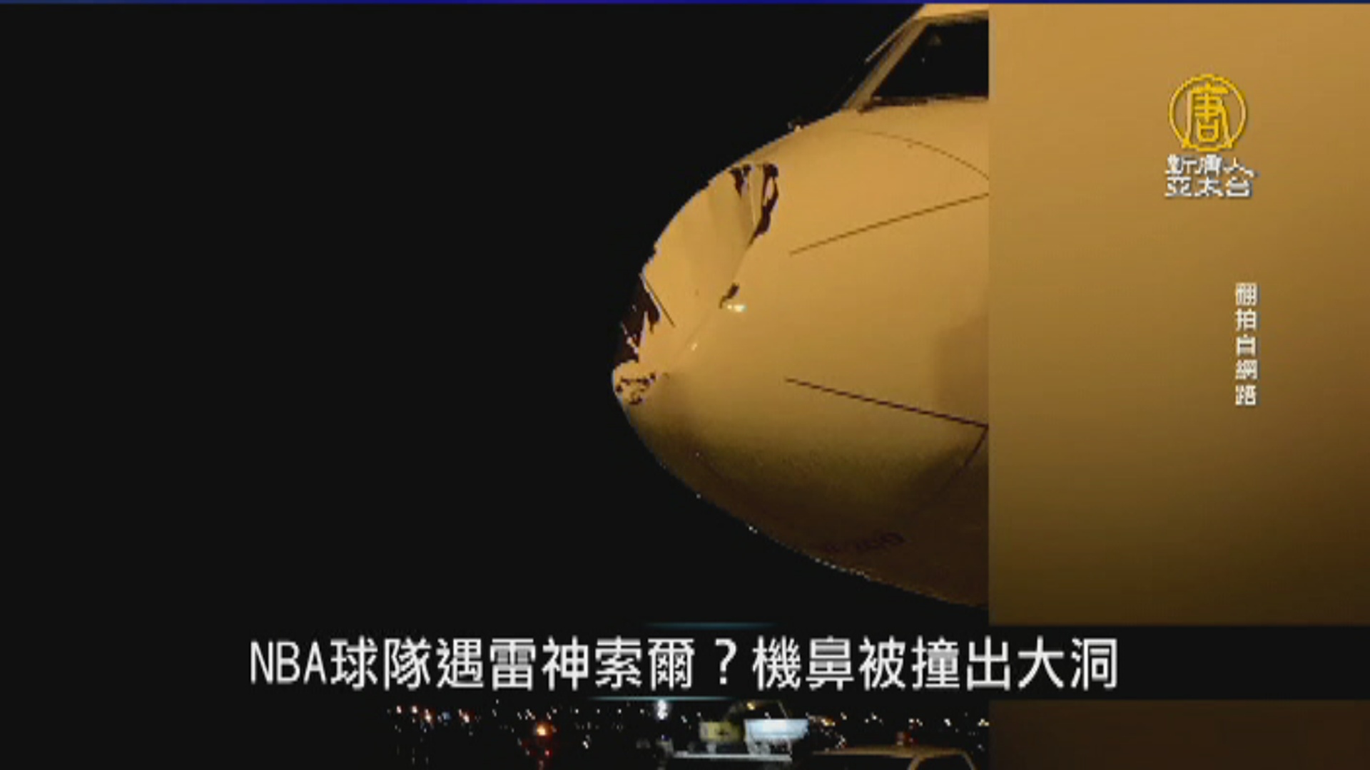 美國NBA雷霆隊的專機在28日凌晨1點左右,從明尼蘇達飛抵芝加哥歐海爾國際機場(O'Hare Airport),但下機後許多隊員都驚呆了,因為飛機機鼻被撞凹成一個大洞,造成的原因不明。達美航空隔天發聲明表示,猜測可能是遭到鳥擊,而雷霆隊球員「甜瓜」安東尼(Carmelo Anthony)則在Instagram直呼:「在半夜這種時候,我們在空中究竟被什麼東西撞到了呢?所幸全員平安。」