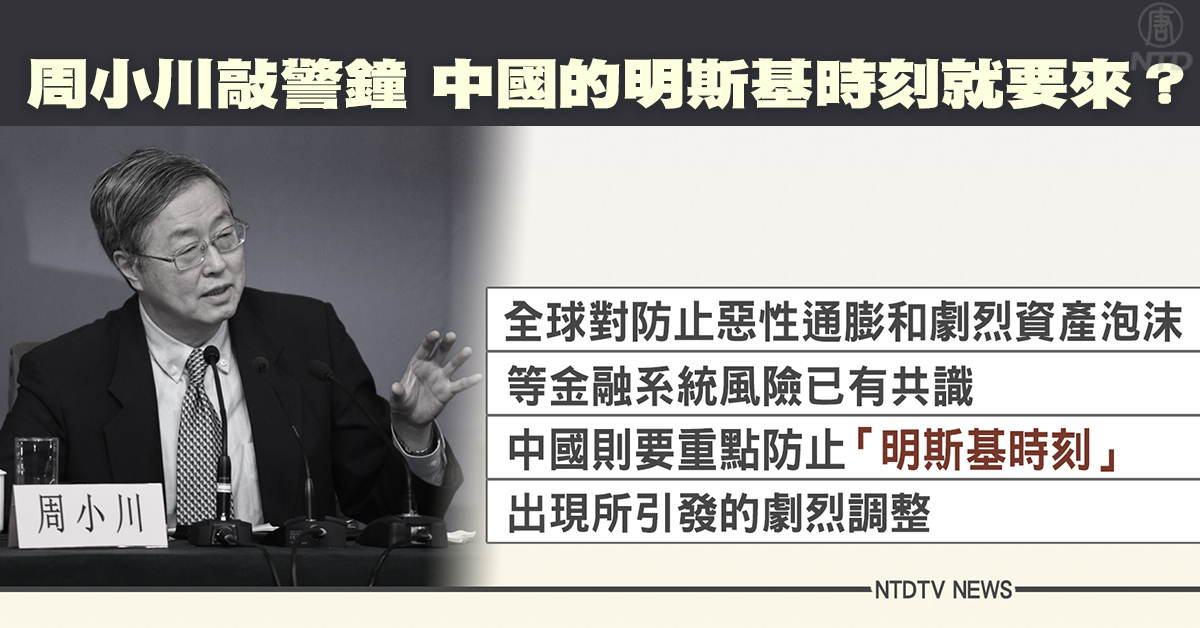 中共央行行長周小川,日前在主持十九大金融系統代表團的討論會上公開指出,全球對防止惡性通膨和劇烈資產泡沫等金融系統風險已有共識,中國則要重點防止「明斯基時刻」出現所引發的劇烈調整。