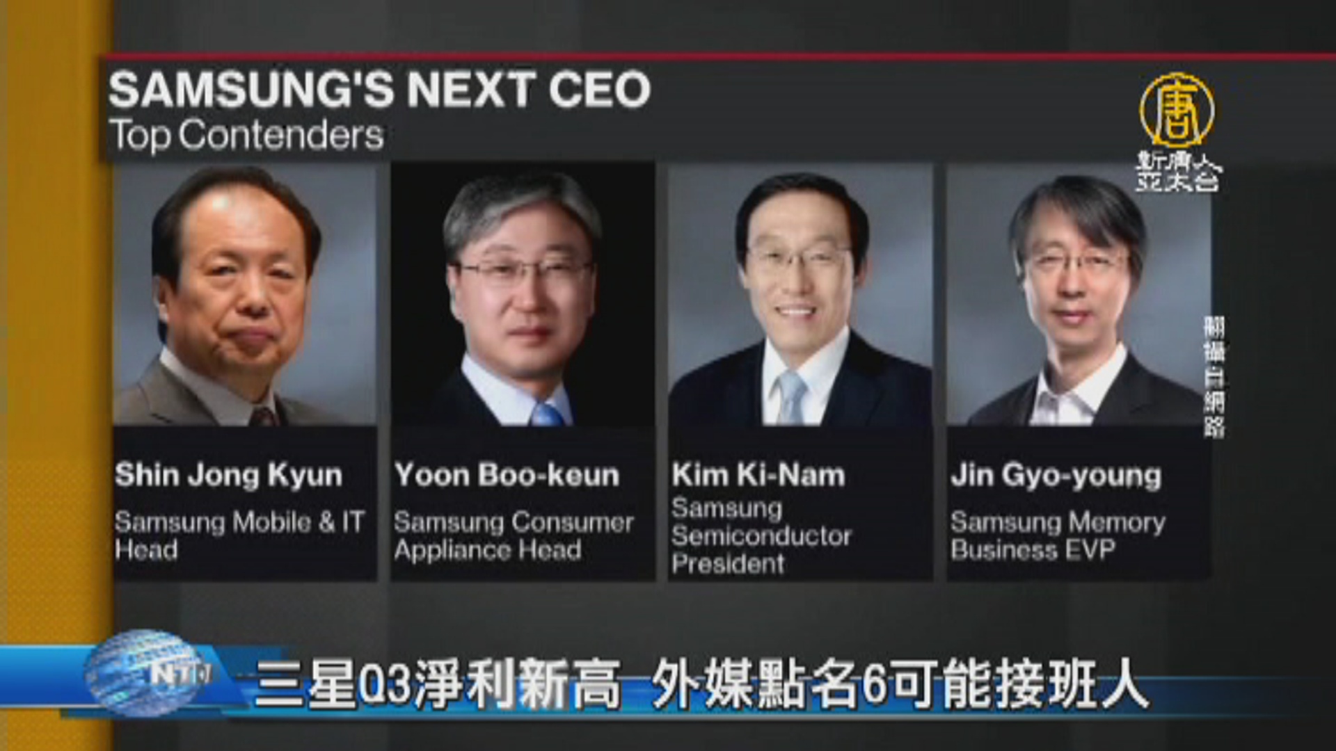 【新唐人亞太台 2017 年 10 月 31 日訊】三星集團今天發布第三季財報,淨利來到100億美元,刷新歷史單季紀錄,最新消息,除了CEO權五鉉明年退休,聯席CEO申宗垮和伊富根也都請辭。