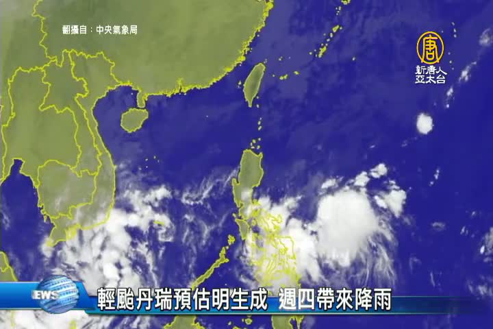 【新唐人亞太台 2017 年 10 月 31 日訊】歡迎回來!這幾天天氣偏涼,週三回溫之後,又可能有颱風影響!位於菲律賓中部的熱帶性低氣壓,有發展為輕度颱風趨勢,預計最快今天、最慢明天,就會增強為今年第23號颱風「丹瑞」。中央氣象局指出,以移動方向來看,直接影響台灣機會偏低,但週四有些水汽可能飄到台灣,加上吹東風,將為迎風面帶來降雨。