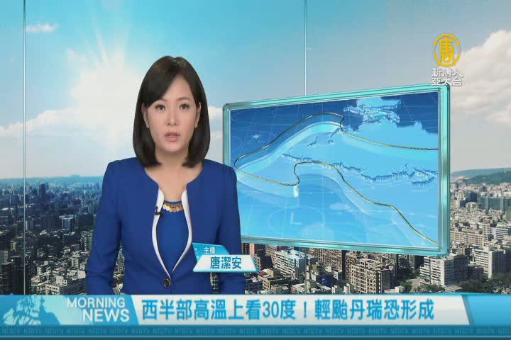 【新唐人亞太台 2017 年 11 月 01 日訊】歡迎您收看11月1日的早安新唐人,先來帶您關心今天的天氣情況。 因為東北季風減弱,今天有望告別濕濕冷冷的天氣。 北台灣溫度明顯回升,東半部在27度到28度左右、西半部高溫則上看30度。另外,在菲律賓中部群島的熱帶低氣壓,持續發展,不排除發展成颱風「丹瑞」。。帶您一起來看到國際媒體重要訊息。