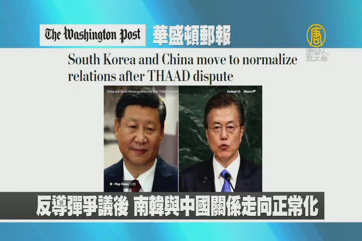 【新唐人亞太台 2017 年 11 月 01 日訊】首先來看到美國華盛頓郵報報導:反導彈爭議後,南韓與中國關係走向正常化。