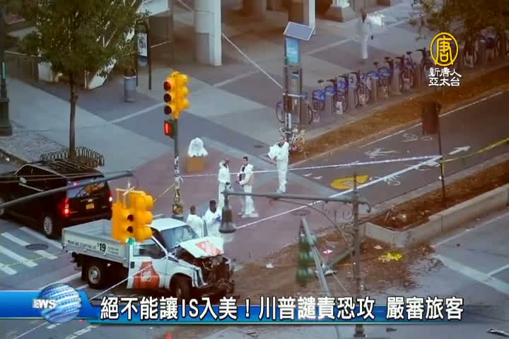 【新唐人亞太台 2017 年 11 月 01 日訊】紐約萬聖節恐攻奪走8人性命,美國總統川普今天表示,已經下令對外國旅客展開更嚴格審查。川普在推特留言:「我剛下令國土安全部加強已經存在的極端審查計畫。在政治上保持正確很好,但這次無法!」川普還強調,絕不能讓ISIS進入美國。川普之前試圖阻擋數個以穆斯林為主國家的旅客入境,但接二連三遭遇法律挑戰。