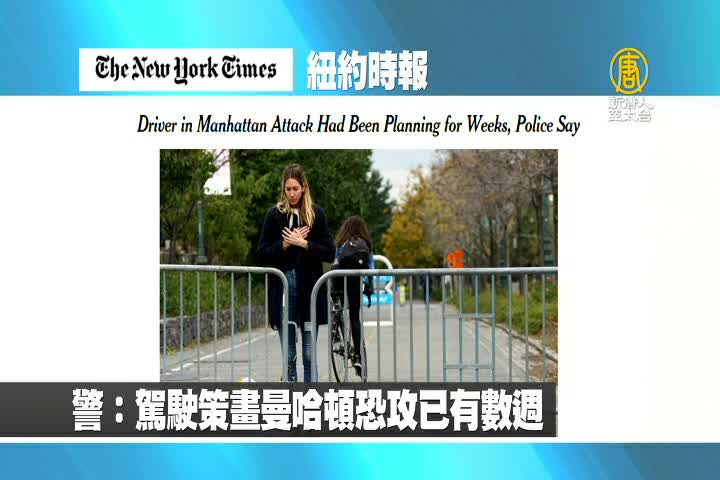 【新唐人亞太台 2017 年 11 月 02 日訊】首先來看到美國紐約時報報導:警方表示,嫌犯策畫曼哈頓恐怖攻擊已有數週。