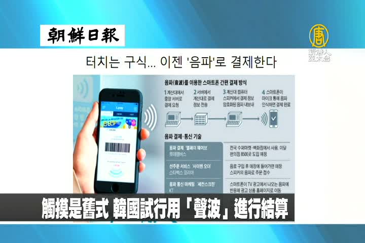 【新唐人亞太台 2017 年 11 月 02 日訊】來看到韓國朝鮮日報報導:觸摸是舊式,韓國試行用「聲波」進行結算。
