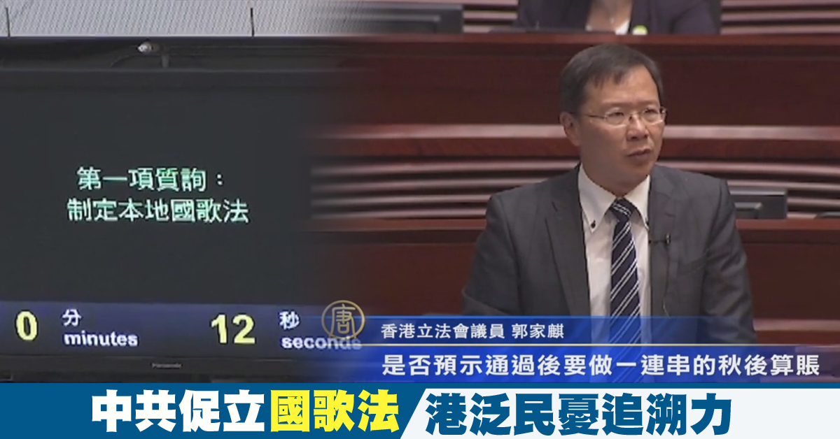 【新唐人亞太台 2017 年 11 月 02 日訊】中共週二將《國歌法》列入香港《基本法》,還規範違者最高可判三年有期徒刑。週三在香港立法會上,泛民議員擔憂《國歌法》在香港立法實施後,會影響市民生活,更反對有追溯期。