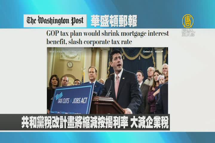 【新唐人亞太台 2017 年 11 月 03 日訊】首先來看到美國華盛頓郵報報導:共和黨稅改計畫將縮減按揭利率,大減企業稅。