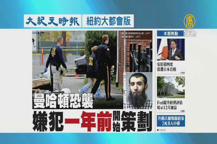 【新唐人亞太台 2017 年 11 月 03 日訊】接著看到大紀元時報紐約大都會版報導:曼哈頓恐襲,嫌犯一年前開始策畫。