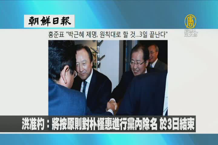 【新唐人亞太台 2017 年 11 月 03 日訊】來看到韓國朝鮮日報報導:洪准杓表示,將按照原則對朴槿惠進行黨內除名,於3日結束。