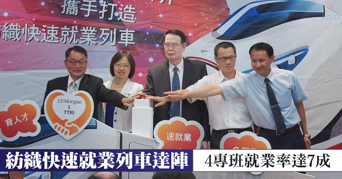 【新唐人亞太台 2017 年 11 月 03 日訊】台灣紡織在國際大放異彩,專業人才需求量大增,美商銀行與紡織所攜手合作,自去年8月打造紡織快速就業列車,幫企業與年輕人,快速找到紡織業相關工作。如今4個專班完滿達成任務,結訓率高達9成、就業率達7成,超過預期,可以說是,開創了台灣紡織業新的育才方式。